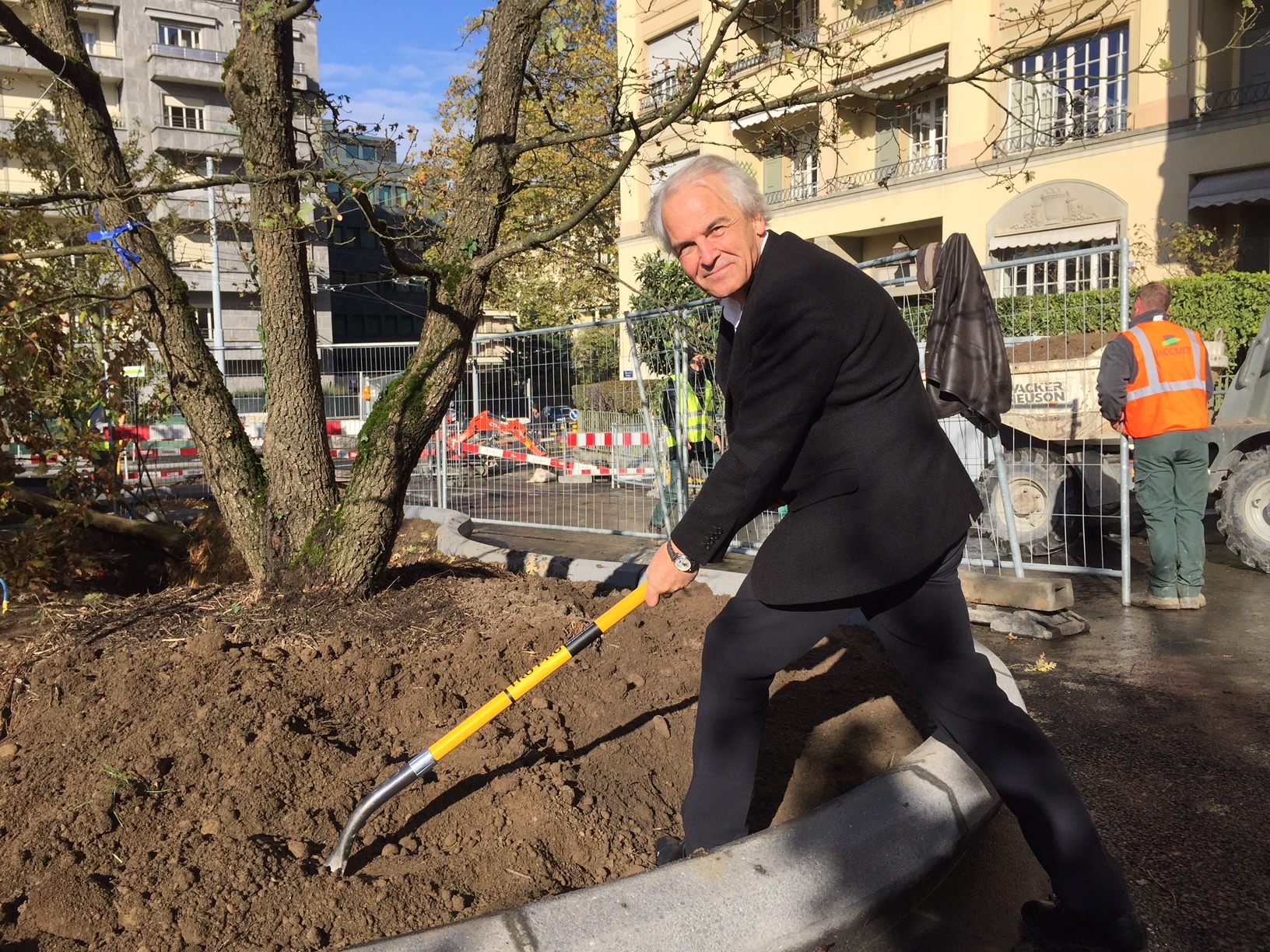 Rémi Pagani a mis les pieds dans la terre pour présenter les aménagements de la gare de Champel. (Photo: kjo)
