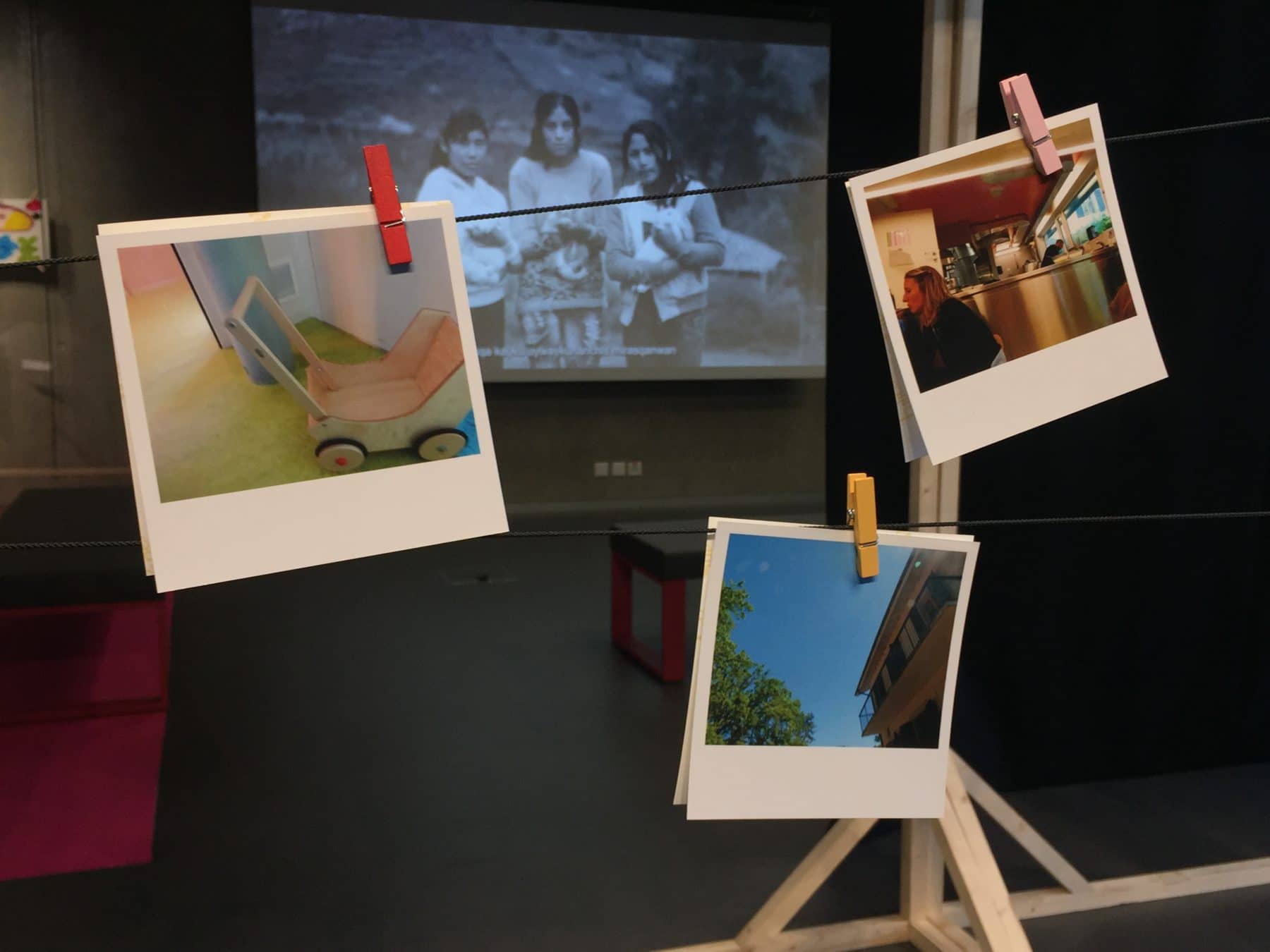 Des photos prises par les plus jeunes enfants et en fond, un film représentant des enfants du monde entier. (Photo MC)