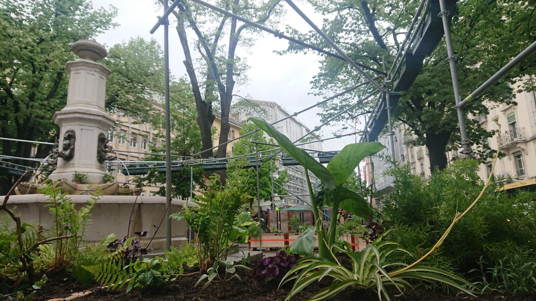 Cette année, le concept de « jardin suspendu » débarque. Pour l’occasion, les jardinières prennent de la hauteur. Bruno Aeschlimann, architecte-paysagiste au Service des espaces verts (SEVE), détaille le but de ces installations, notamment place de la Navigation, aux Pâquis: